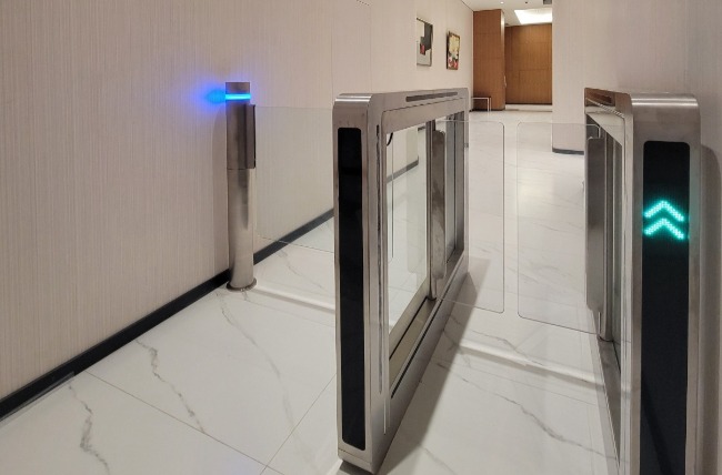 玻璃圓柱擺閘安全門 CP-120 透過自行研發(fā)的機(jī)構(gòu),電控,讀卡機(jī)將各種智慧濃縮在一支細(xì)長的圓柱裡,在不失穩(wěn)定度的同時,整體視覺上則是更為的輕量化,其機(jī)身直徑為 118mm,單支可支持最大 1000mm 的通道大小,並且可以兩支搭配使用組成 1500mm 的超大型通道,並結(jié)合了物聯(lián)網(wǎng)等功能終端用戶可以更輕鬆的做管理,也能提供更靈活的界面供系統(tǒng)整合商調(diào)用。