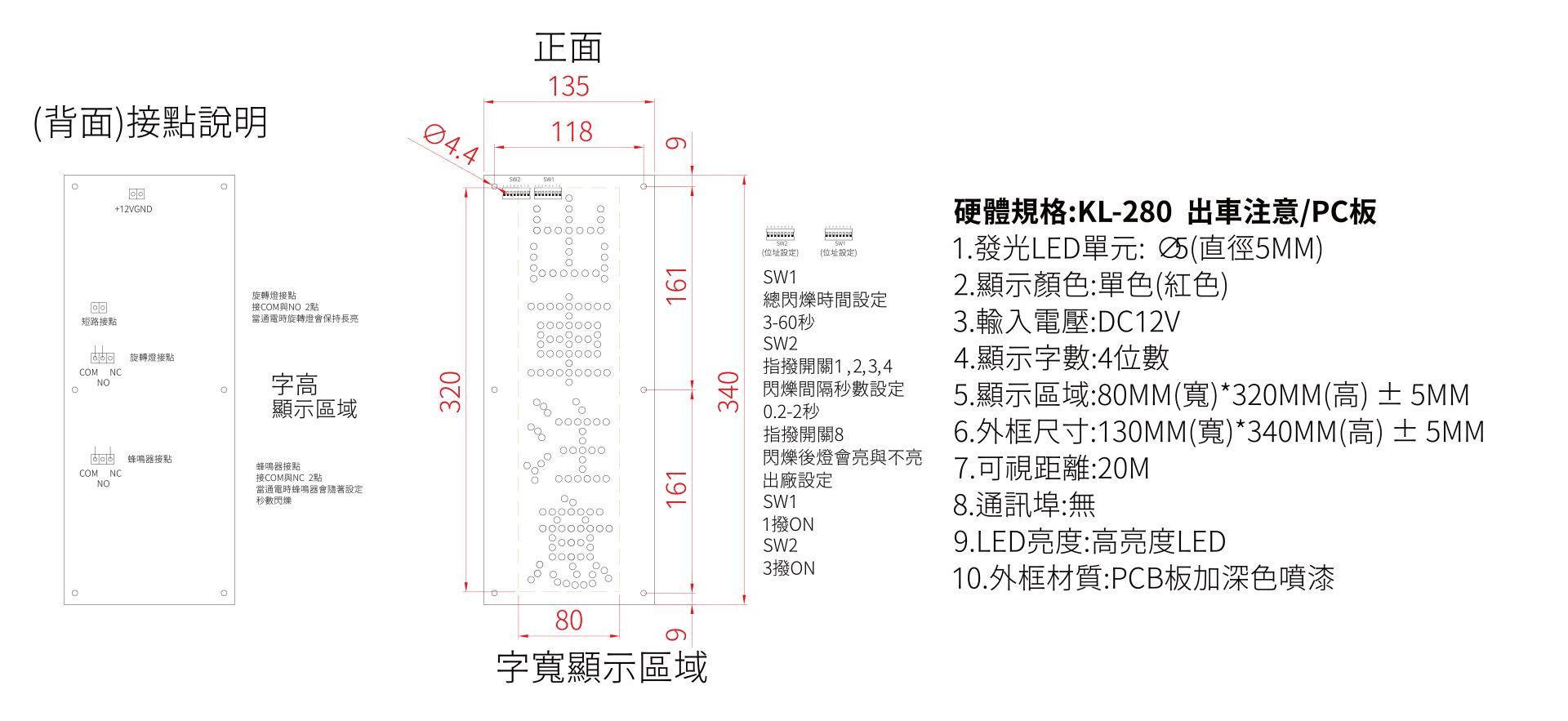 車位計數(shù)888(三位數(shù)) / PC板,硬體規(guī)格(大),外框材質為PCB板加深噴漆,可視距離20M。
