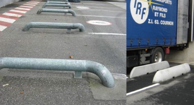 車輪導引座提醒貨車司機在駛?cè)氪a頭時,讓司機確切地知道如何定位卡貨車,以便車輛駛?cè)?,對準車輪阻擋器,正確定位。